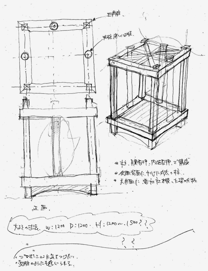 厨子(不可逆・仮設・容器) アイデアスケッチ