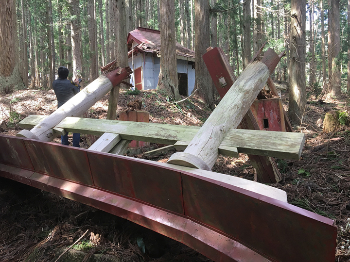 風神雷神の為の厨子である。風神雷神を奉っていた雷神社は朽ち果て、倒壊する恐れがある。前回の山形ビエンナーレ2018以降、風神雷神はこの雷神社を離れ、保管されることになった。その風神雷神の為の厨子を制作した。