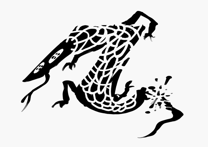 曲がりくねった身体と、大きく鋭い目、不揃いなウロコ。大蛇松からとかげやヘビになるとしたらどのようになるのか、イメージを付けるために簡易的なシルエットでスケッチを行った。顔は角度によって、平たくも尖ったようにも見え、得体のしれない存在としてのとかげの表現を模索した。