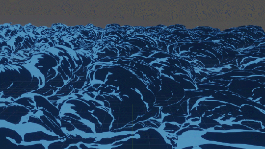 荒れ狂う藻が湖の様子を平面的なタッチ表現をするテスト。通常の波的な表現ではなく、物質的な動きにすることで迫力を出す試作中の動画。