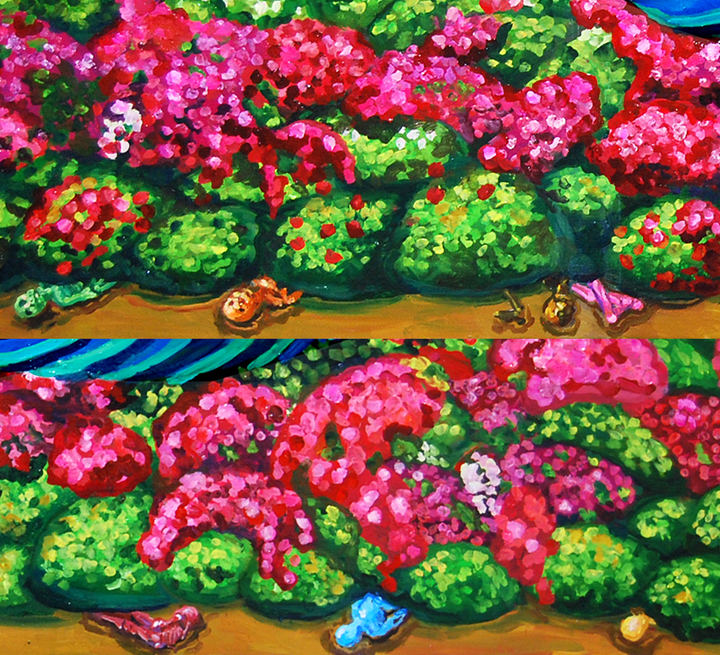 04-7-a1 ハタユキコ《長岡山の乙女》(部分) ツツジ畑と骸骨