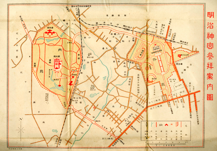 外苑竣功当時(大正15年)の明治神宮内苑外苑および参道図(明治神宮所蔵)